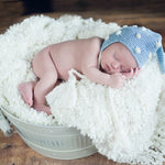 100% mercerized cotton is offered in 4 pastel colors: baby pink, baby blue, pastel yellow or lilac.  Each hat has white balls of mercerized cotton with a full tassel at the top and at the end of each braid.  An heirloom piece that you will treasure.