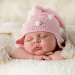 100% mercerized cotton is offered in 4 pastel colors: baby pink, baby blue, pastel yellow or lilac. Each hat has white balls of mercerized cotton with a full tassel at the top and at the end of each braid. An heirloom piece that you will treasure.