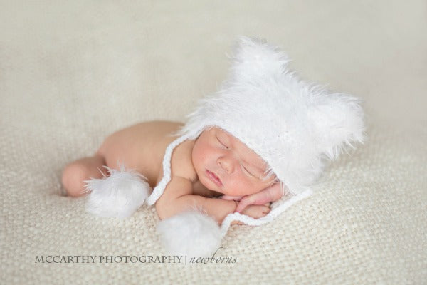 Oh my! One of our cutest hats ever and the softest to boot with premium specialty yarn! Our fuzzy lil' bear hat is one you will treasure not only for its uber cuteness but you won't be able to quit touching the softness. Available in all four Daisy Baby sizes