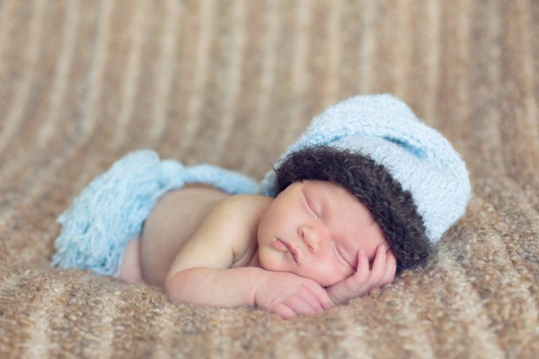 This super soft hat is offered in baby blue or baby pink. The base color is accented with a chocolate brown feather trim and a full chocolate tassel. Absolutely beautiful!