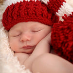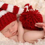 This handmade pom-pom hat in bright red and white is perfect for Christmas or Valentine photos!