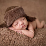 Chocolate aviator hat awaiting it’s next adventure! This aviator style hat is crocheted on the outside with buttery soft fur on the inside, available in all 4 Daisy Baby sizes!