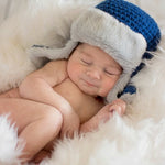 Navy blue aviator hat awaiting it’s next adventure! This aviator style hat is crocheted on the outside with buttery soft fur on the inside. Available in all 4 Daisy Baby sizes.
