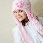 She won't loose her scarf with this one! Delicate and beautiful design work on this hat. The Brinn has an attached scarf that has delicate flowers to match the hat, offered in three colors!