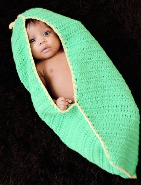 Two peas in a pod or one pea in a pod doesn't matter when the pod is this cute! A crocheted pea pod with a opening for baby's face and a crocheted "stem" at the top. Perfect for edamame fans, too.